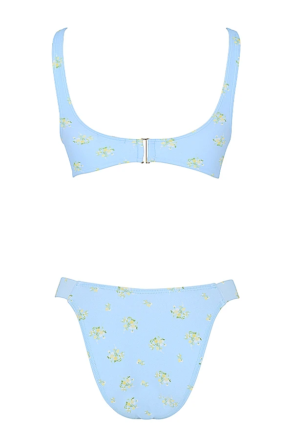 Classic pretty shapes and the most delicate prints makes ‚Mariposa‘ the two piece that you’ll want to spend all summer in. The Top has underwired cups, shoulder straps and fastens to the back with a swan hook. It has a super delicate floral print that is ultra pretty. The briefs have a tanga shape and medium booty coverage. Wear yours with a crisp white over-shirt and sunnies at the beach and with denim cut offs away from the poolside.