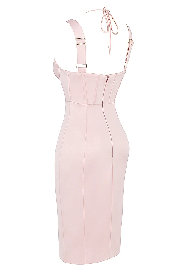 Our ‚Marsha‘ midi dress exudes elegance and is designed to make you feel your most confident. Made from our lustrous duchess satin, it has a pretty sweetheart neckline with an underwired bust for full support and a lace up front. The bodice has feminine lace up details to the bust to prettily frame your décolletage.