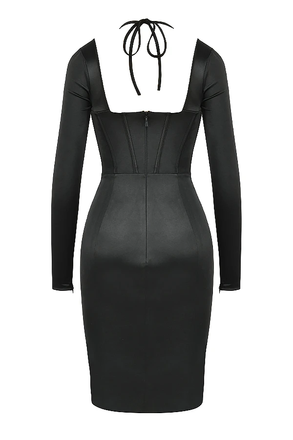‚Grazia‘ has a sweetheart neckline with underwired cups to support, lift and showcase the bust and it’s available in two cup sizes for that perfect fit.The long slim-fitting sleeves balance the midi hem beautifully. It has a zip to the back for easy on. Wear yours with our ‚Lola‘ black High heel sandals. The ‚Regular Cup‘ option suits cup size A-C whilst the ‚Bigger Cup‘ option suits cup size D-E.