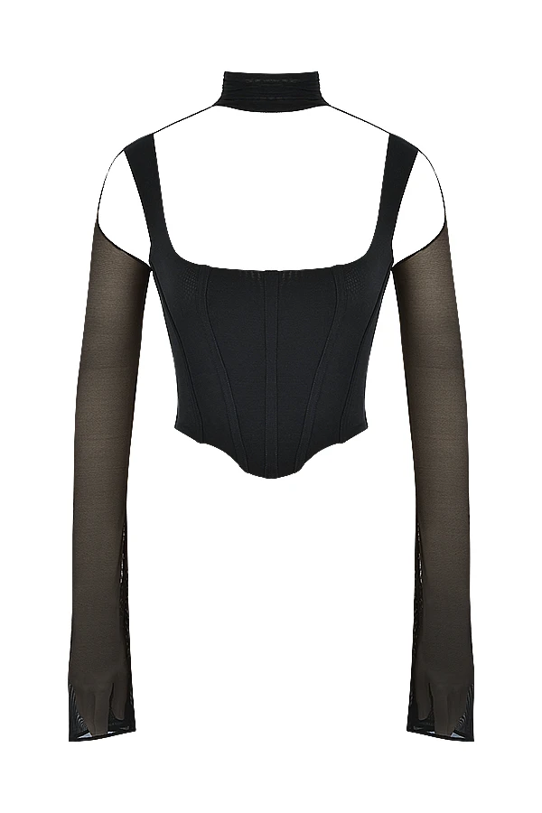 Our super wearable ‚Paulina‘ corset is your sleek and chic go to for the party season. Cut from the softest stretch mesh in everyone’s favourite black hue with an inner layer of our special power mesh to the bodice to sculpt and shape the figure from within. ‚