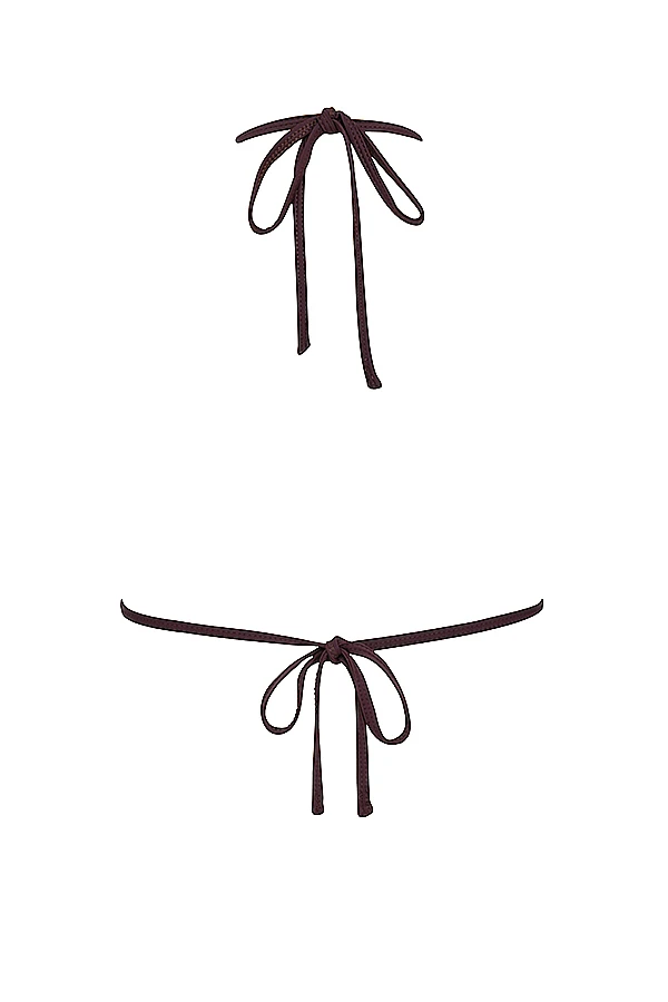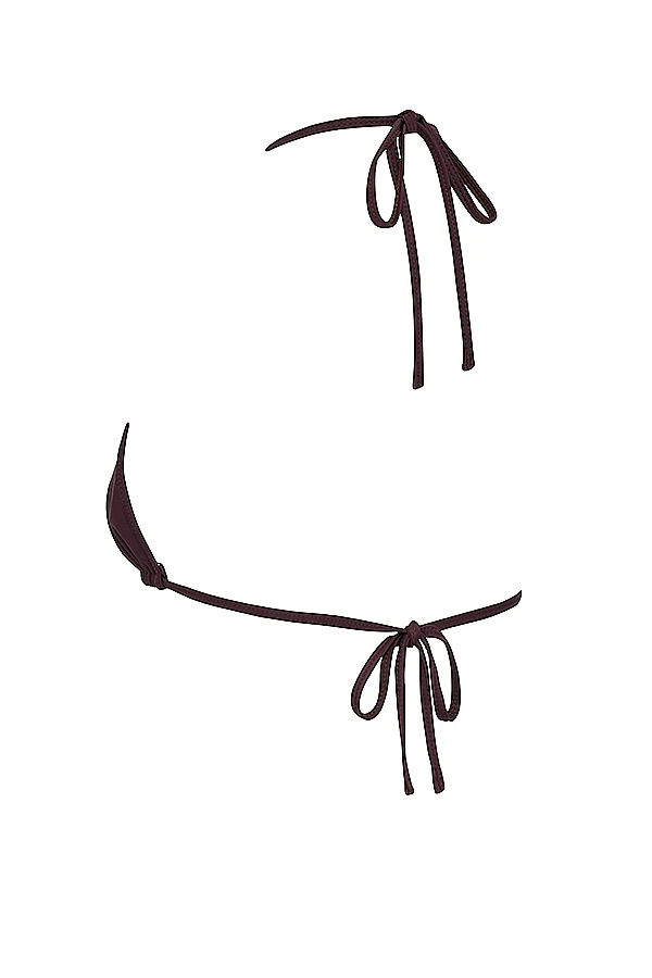 Our ‚Bali‘ bikini top is minimal and versatile with classic triangle cups and the warm cacao hue is perfect for any beach destination. Cut from our luxury stretch swim fabric, ‚Bali‘ has halter neck ties and additional ties to the back to ensure a comfortable fit. Wear yours with our ‚Cote D’Azur‘ thong bikini bottoms in cacao for a chic tonal vibe.