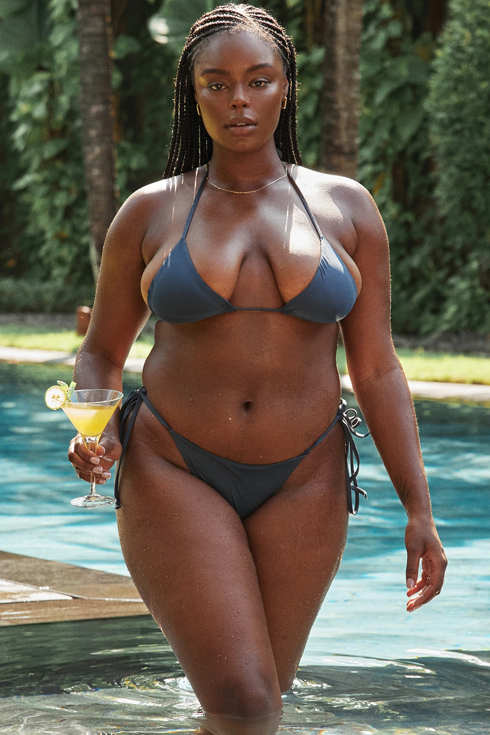 Our ‚Tropez‘ bikini top features classic triangle cups and the deep blue hue will be a beach favourite. Cut from our luxury stretch swim fabric, ‚Tropez‘ has halter neck ties and fastens to the back for a comfortable fit. Wear yours with our ‚Santorini‘ or ‚Athens‘ bikini bottoms in deep blue for a chic and elegant match.