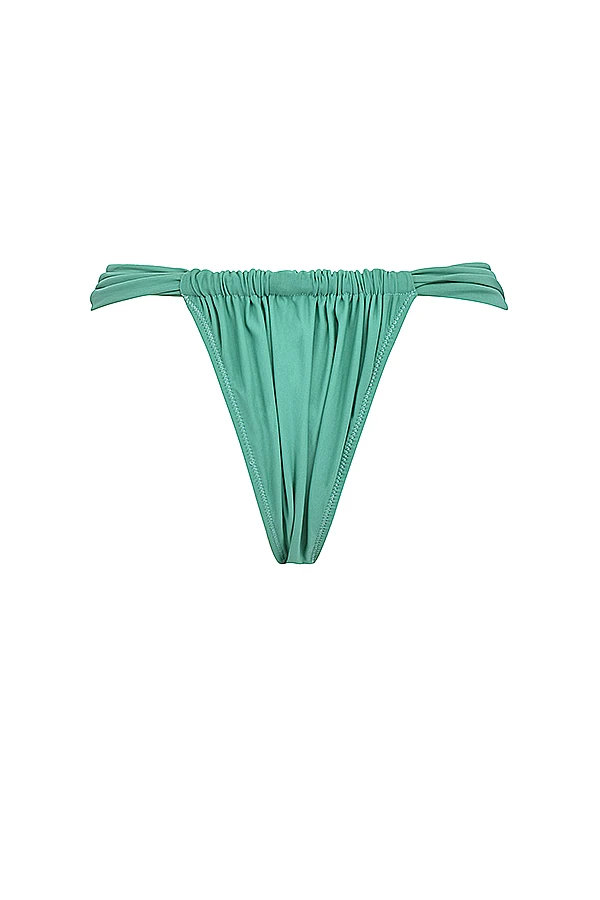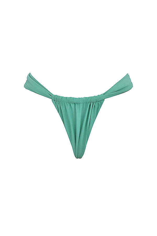 Every piece of our new swimwear collection has been thoughtfully designed to be mixed and matched and our ‚Athens‘ bikini bottoms are one of our favourites. Cut from our luxury stretch swim fabric in a eucalyptus hue, ‚Athens‘ have a sexy high leg silhouette to elongate the legs and we especially love the delicate gathering for a pretty feminine vibe. Wear yours poolside with our ‚Cassis‘ bikini top in eucalyptus and slip on our ‚Maiko‘ shirt for cocktails at the bar.