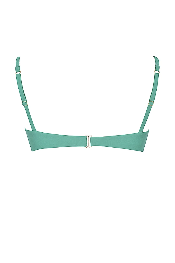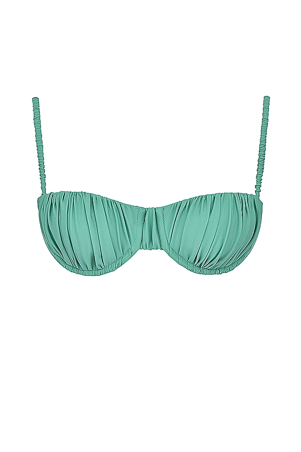 The ruching on our ‚Cassis‘ bikini top is so delicate and elegant, making it an ultra chic choice for sunkissed days at the beach. It’s made from our stretch swim fabric and has underwired cups that lift and shape the bust for the most amazing cleavage with a swan hook fastening to the back. The elasticated, gathered straps are so pretty and rest gently on the shoulders. Wear yours with our ‚Athens‘ or ‚Cote D’Azur‘ bikini bottoms in eucalyptus depending on your vibe.