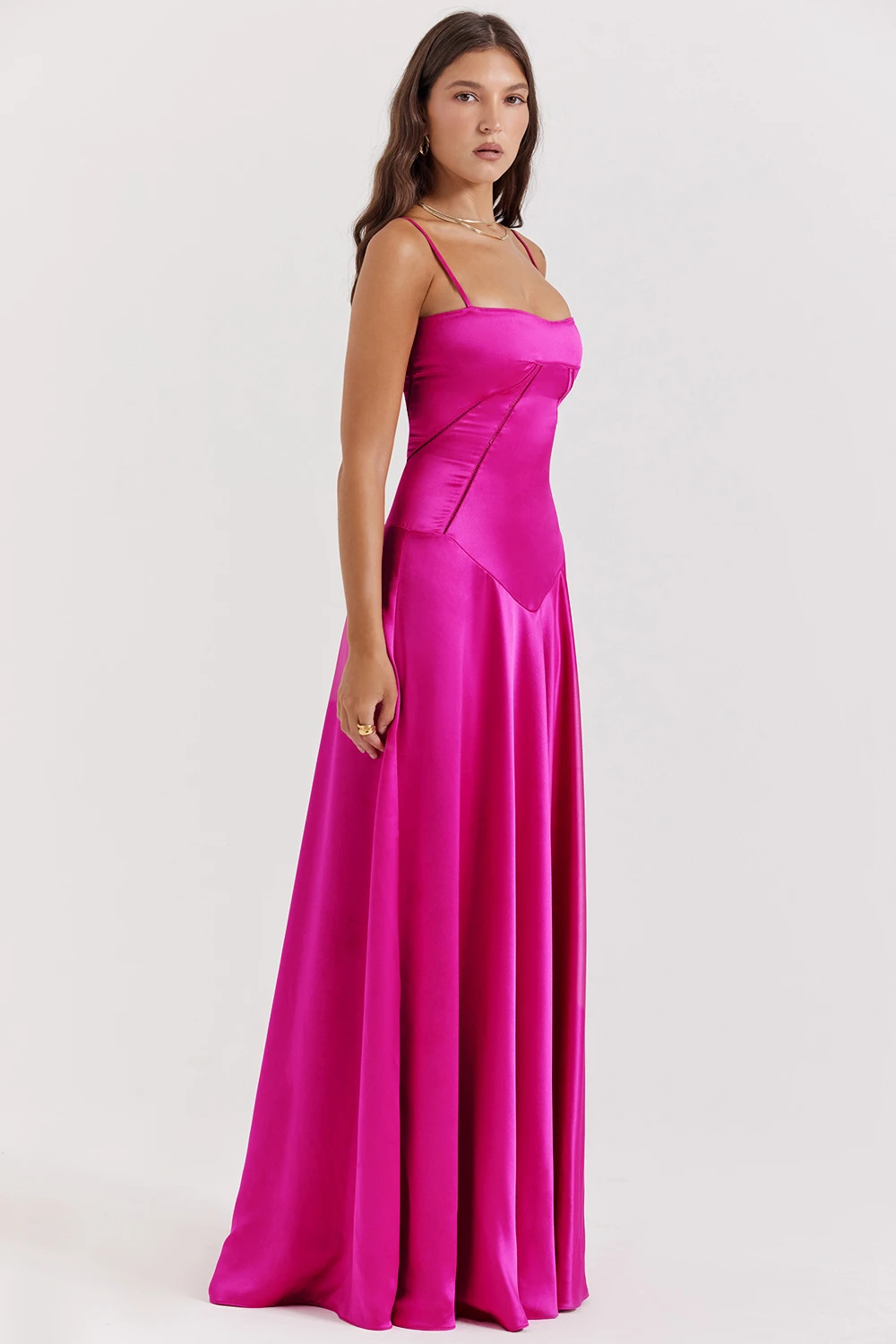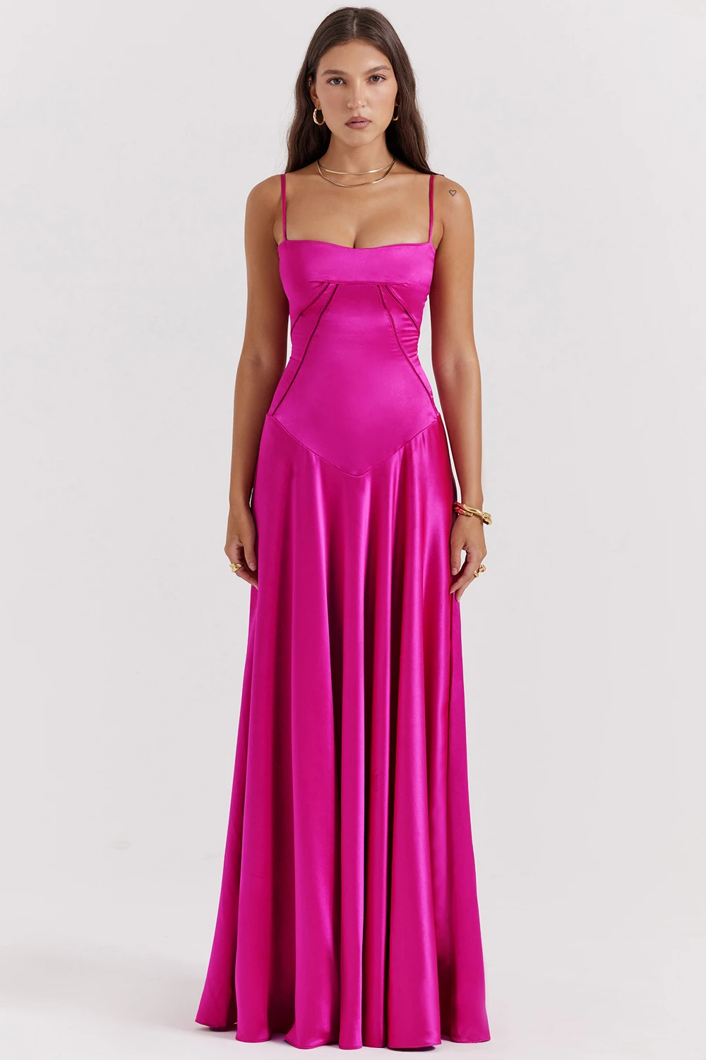 The bodice has a curved hem that sits below the natural waistline and we’re loving the corset inspired lace up back for a vintage feel. The skirt skims over the hips, falling freely to the floor and ‚Anabella‘ would not be complete without tonal heels like our ‚Bella‘ in pink for glamorous events. The ‚Regular Cup‘ option suits cup size A-C whilst the ‚Bigger Cup‘ option suits cup size D-E.