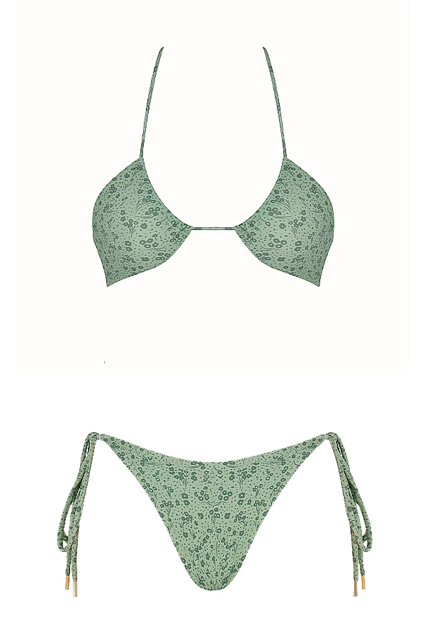 Our ‚Lira‘ bikini feels especially chic thanks to the upside down triangle cups. It’s cut from our soft stretch fabric and fastens to the back with a swan hook and ties as a halter neck. The flattering dipped front briefs provide medium coverage with adjustable ties to customise the fit. Lounge poolside and style yours with a crisp white over-shirt to accompany you to the bar.