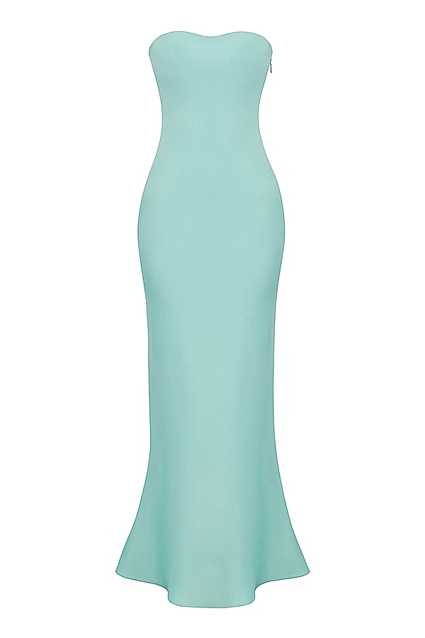 Simple elegance is what we love about ‚Alette‘. It’s cut on the bias from an ultra light duchess satin for a luxurious feel in a striking jade hue that drapes so beautifully over your frame. The strapless neckline highlights your decolletage that’s perfect for showcasing a delicate necklace.