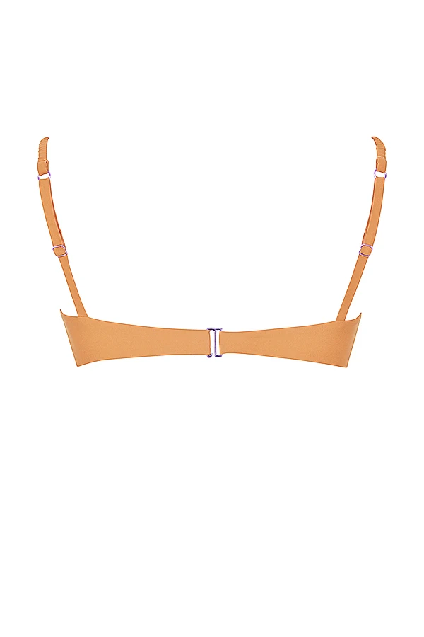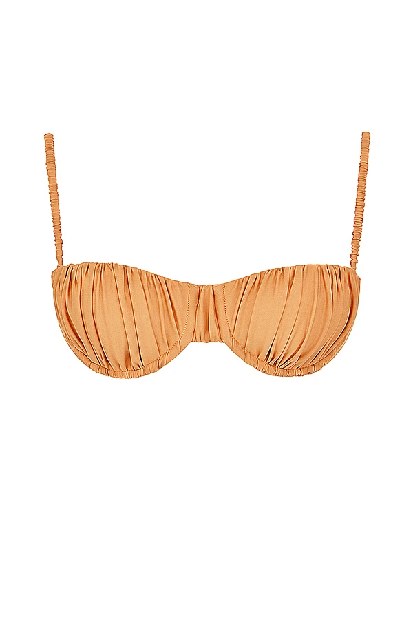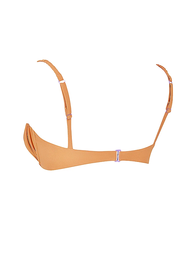 The ruching on our ‚Cassis‘ bikini top is so delicate and elegant, making it an ultra chic choice for sunkissed days at the beach. It’s made from our stretch swim fabric and has underwired cups that lift and shape the bust for the most amazing cleavage with a swan hook fastening to the back. The elasticated, gathered straps are so pretty and rest gently on the shoulders. Wear yours with our ‚Athens‘ or ‚Santorini‘ bikini bottoms in light orange depending on your vibe.