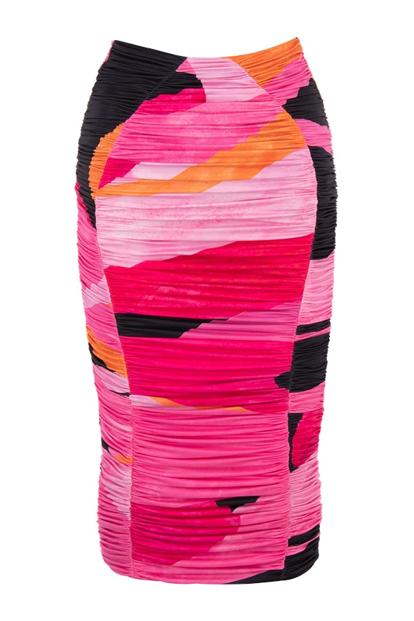 Cut from our soft and silky organza mesh, ‚Nolene‘ has a stretch power mesh lining layer that sculpts your figure and acts as shapewear within the garment. It has a flattering midi cut and sits at the natural waist. We love the seamed ruching details and think that this looks perfect with black or neutral strappy sandals such as ‚Barefoot‘ and the ‚Jacinta‘ bodysuit.
