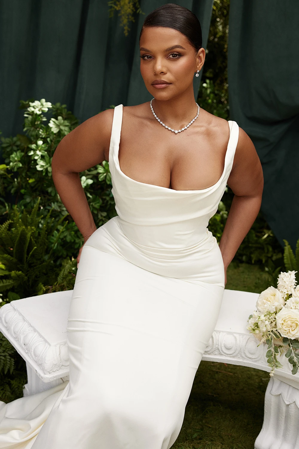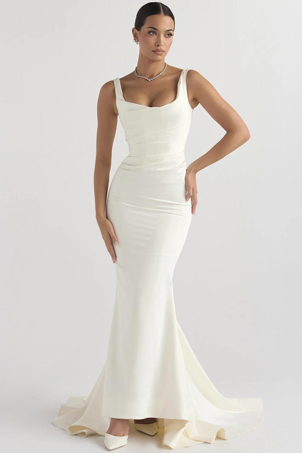 Delicately cut from our lustrous and ultra luxe heavyweight duchess satin, our ‚Emilie‘ gown looks so chic and elegant from every angle so you’re guaranteed to feel confident and beautiful on your big day. The romantic gathering to the bodice is framed with elegant shoulder straps and features our classic corsetry boning to cinch the waist right in and lift the bust for the most flattering silhouette.