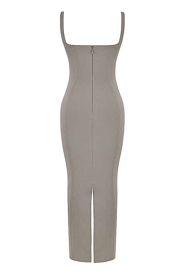 ‚Rea‘ is designed with figure defining casing that flatters the bust and gives this simple silhouette a feminine touch. Cut from our high tension fabric for a sculpting fit and blended with plenty of stretch to hug your curves in a bodycon style, ‚Rea‘ has an ankle grazing maxi length and the split to the back ensures easy movement. It has a zip to the back for easy on and we love this paired with our ‚Paris‘ heels in patent black.