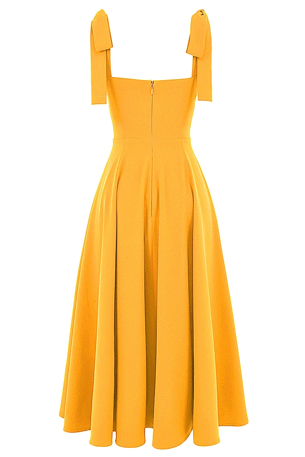 The bright and beautiful tangerine hue is perfect for garden parties. The skirt has special seams that curve over the hips to exaggerate your curves and it’s fully lined as you’d expect from us.