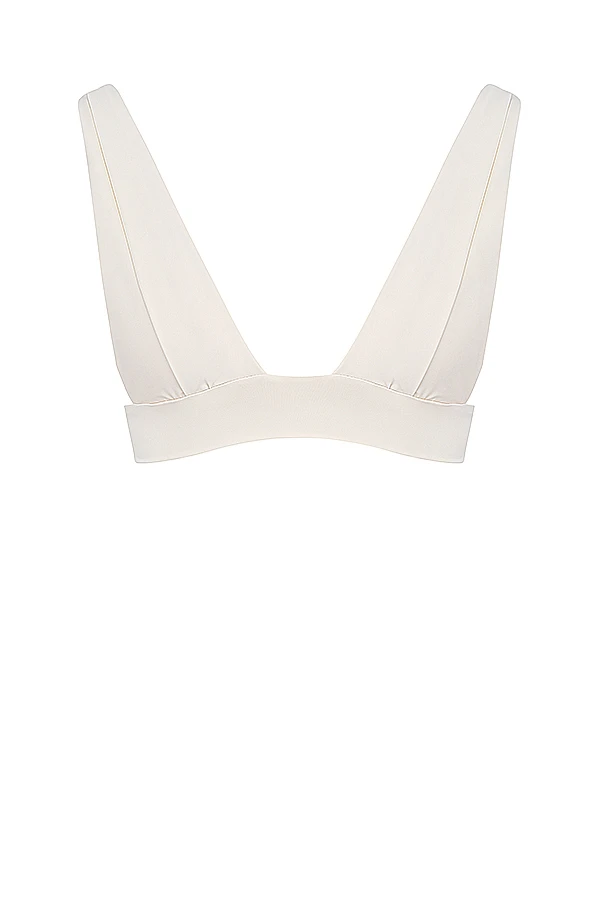 Our ‚Seychelles‘ bikini top is instantly flattering with its high apex triangle cups and soft vanilla hue that’ll look gorgeous against any skin tone. Cut from our luxury stretch swim fabric, ‚Seychelles‘ has wide straps and pretty self ties to the back for a personalised fit.