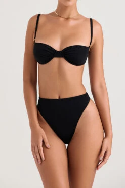 Our ‚Medea‘ bikini top is calling for summer vacays and perfect for poolside lounging. It features a strapless bandeau style and has a tortoise shell ring detail at the centre with a swan hook fastening to the back. Wear yours with our reversible ivory/violet floral ‚Kos‘ bikini bottoms depending on your vibe or mix and match with any of our new swimwear collection.