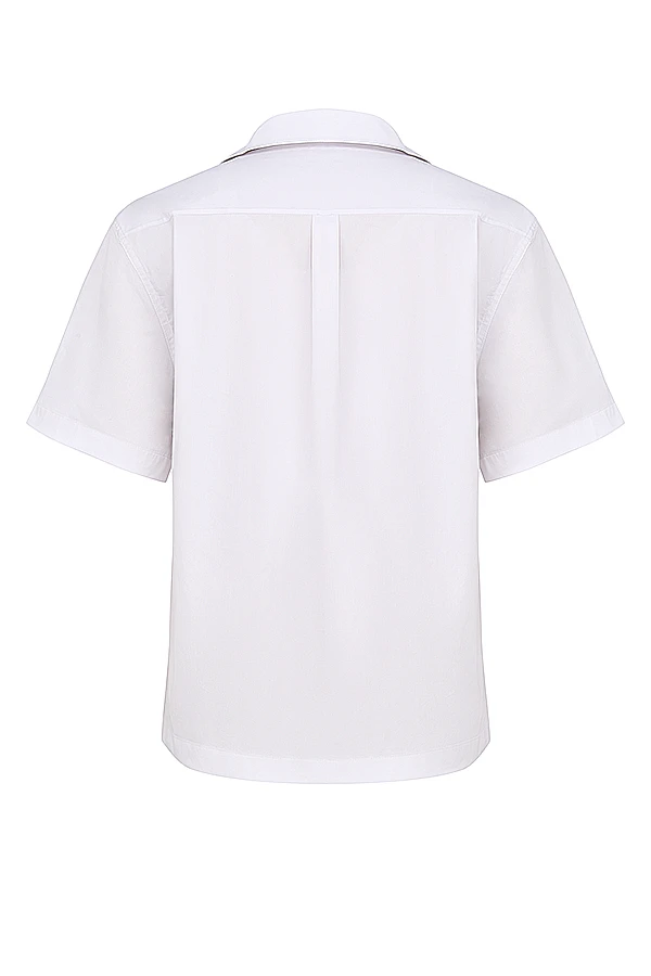 Whether its lazing by the pool or heading to the beach, ‚Maiko‘ is perfect for slipping on over our latest swim collection. Cut from stretch white cotton, it has a classic collar with a button front and short sleeves. Pair yours with our ‚Reno‘ trousers.